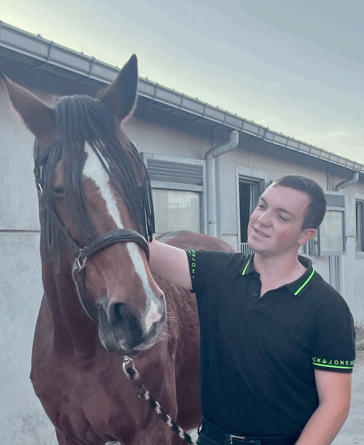 Nick travaille depuis des années chez nous et veille au bien-être de nos chevaux et au nettoyage des installations.